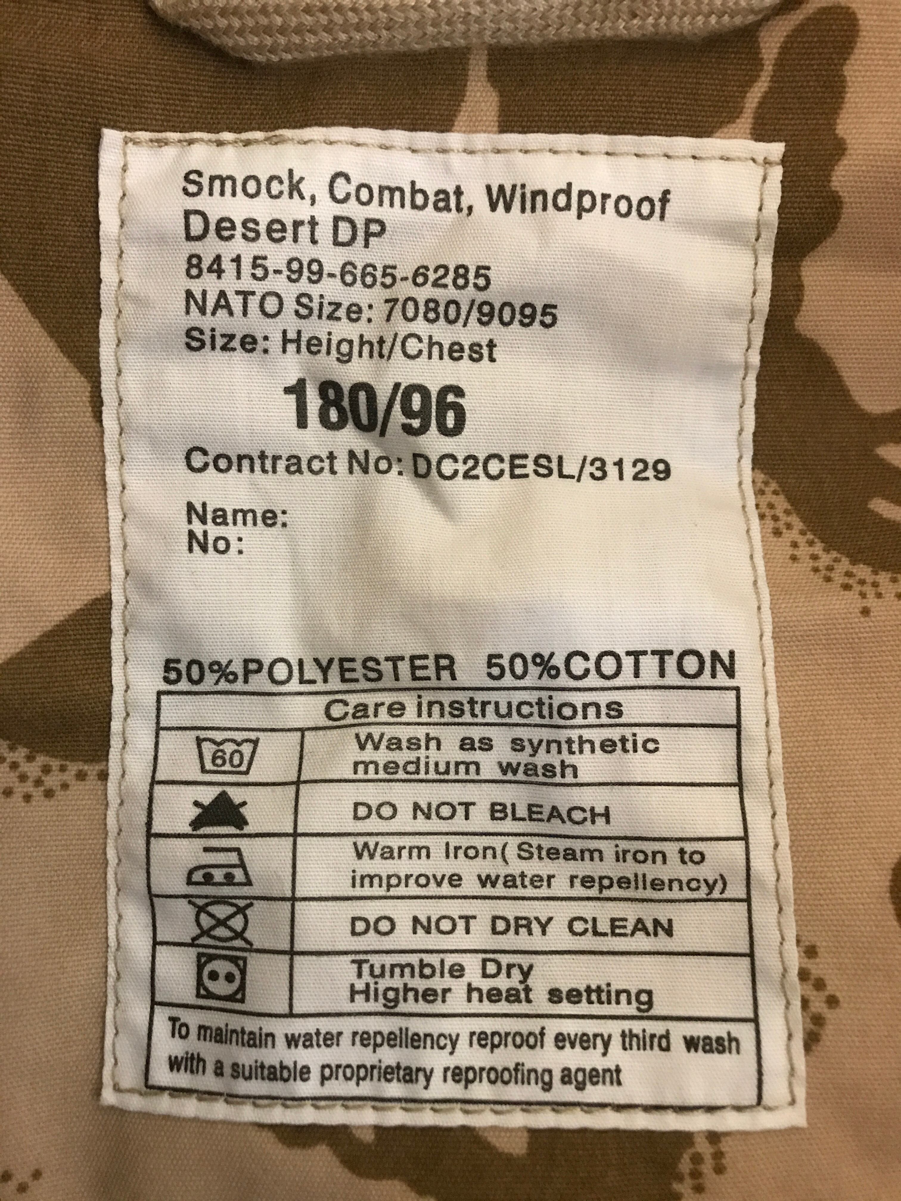 イギリス軍実物放出のウィンドプルーフ コンバットスモック