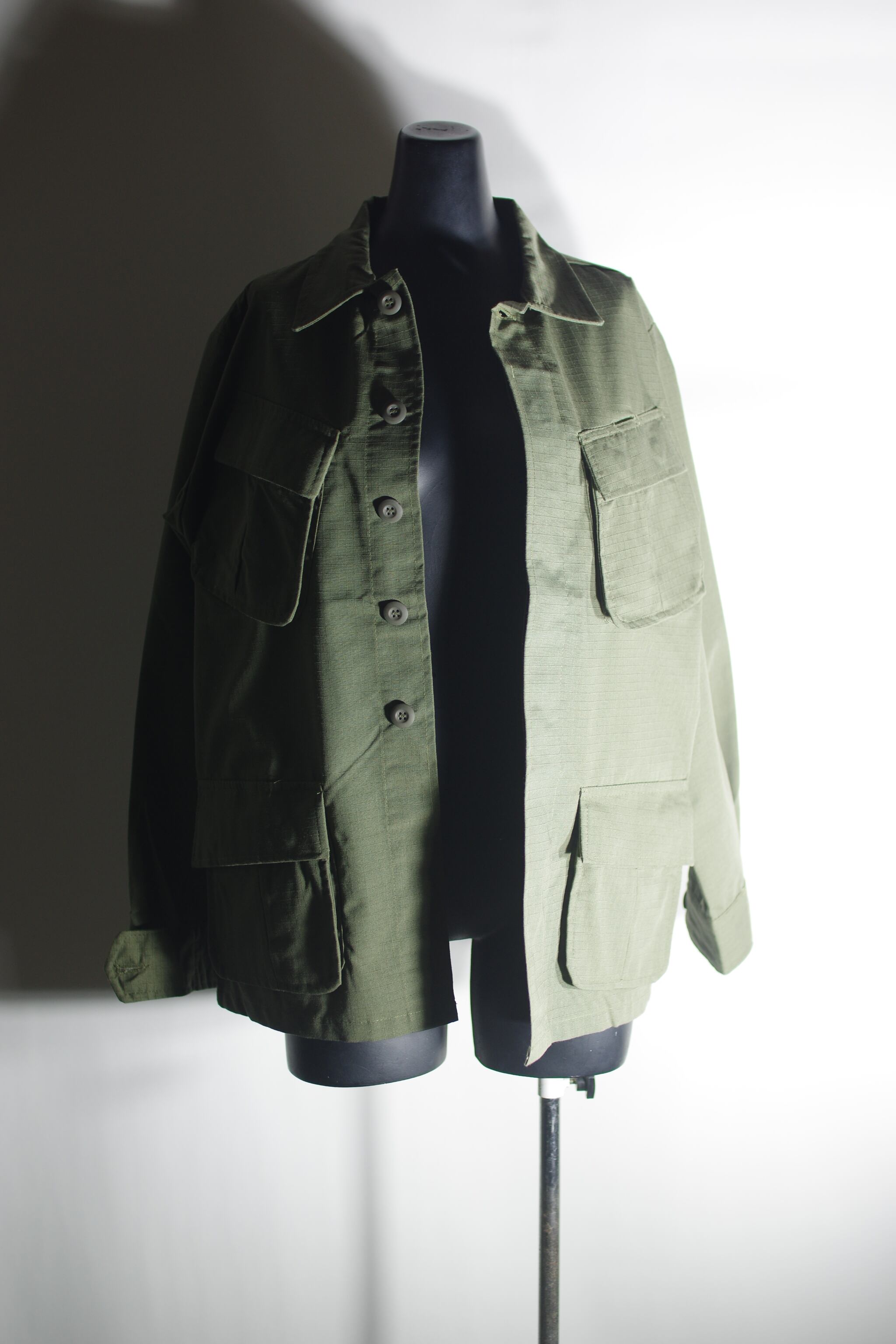 シンプルでありながらもモードな雰囲気が漂うUS ARMY Jungle Fatigue Jacket。ジャストサイズの綺麗めスタイルで、モノトーンコーデやノームコアスタイルにもぴったり。大人っぽさと洗練された雰囲気を演出し、主役となる一着です。