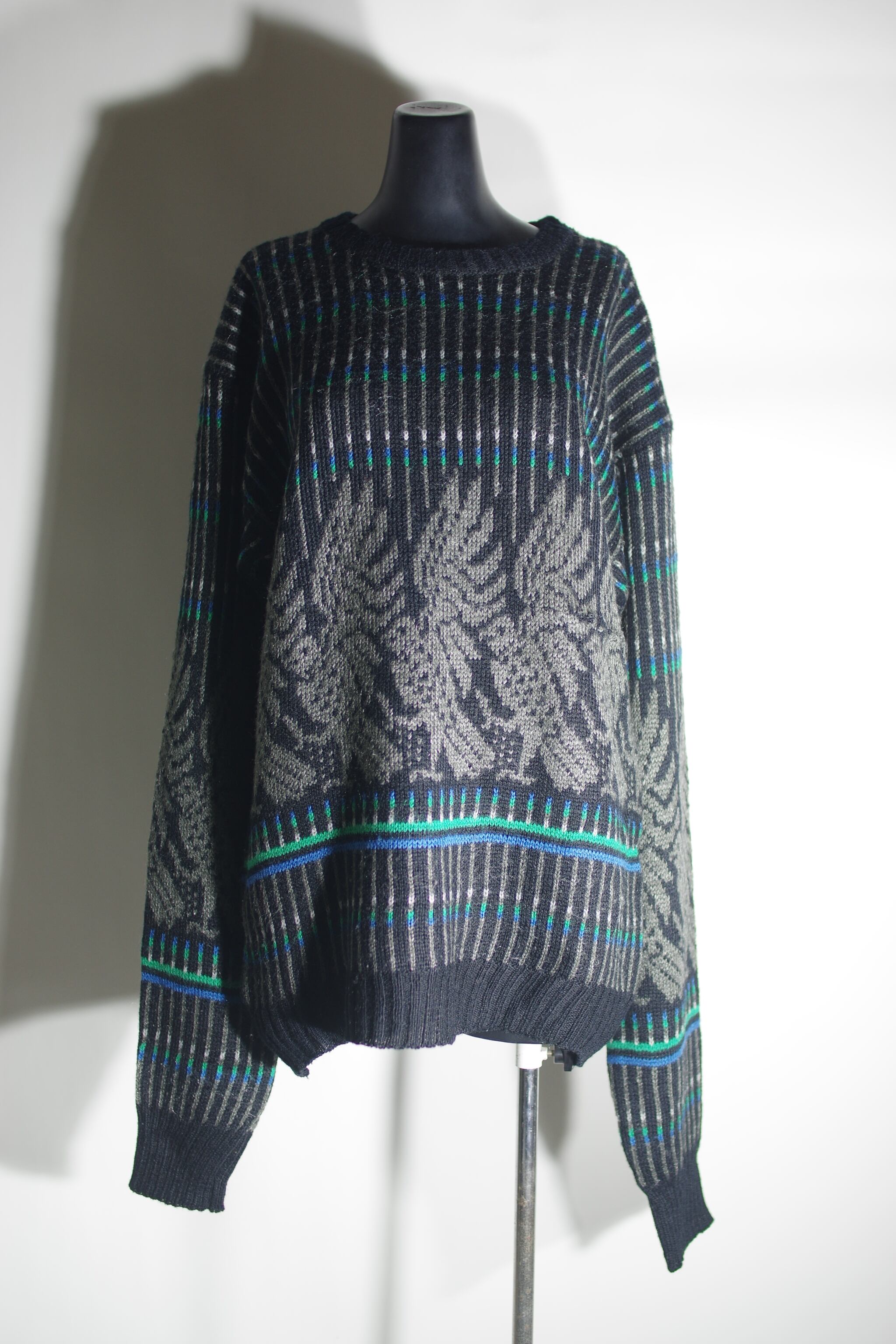温故知新な魅力が詰まったvintage Wrangler Design knit sweater。その独特なデザインと配色は、コーディネートの主役級の存在感を放ちます。流行に左右されず、ワンランク上のスタイルを演出できる一枚です。