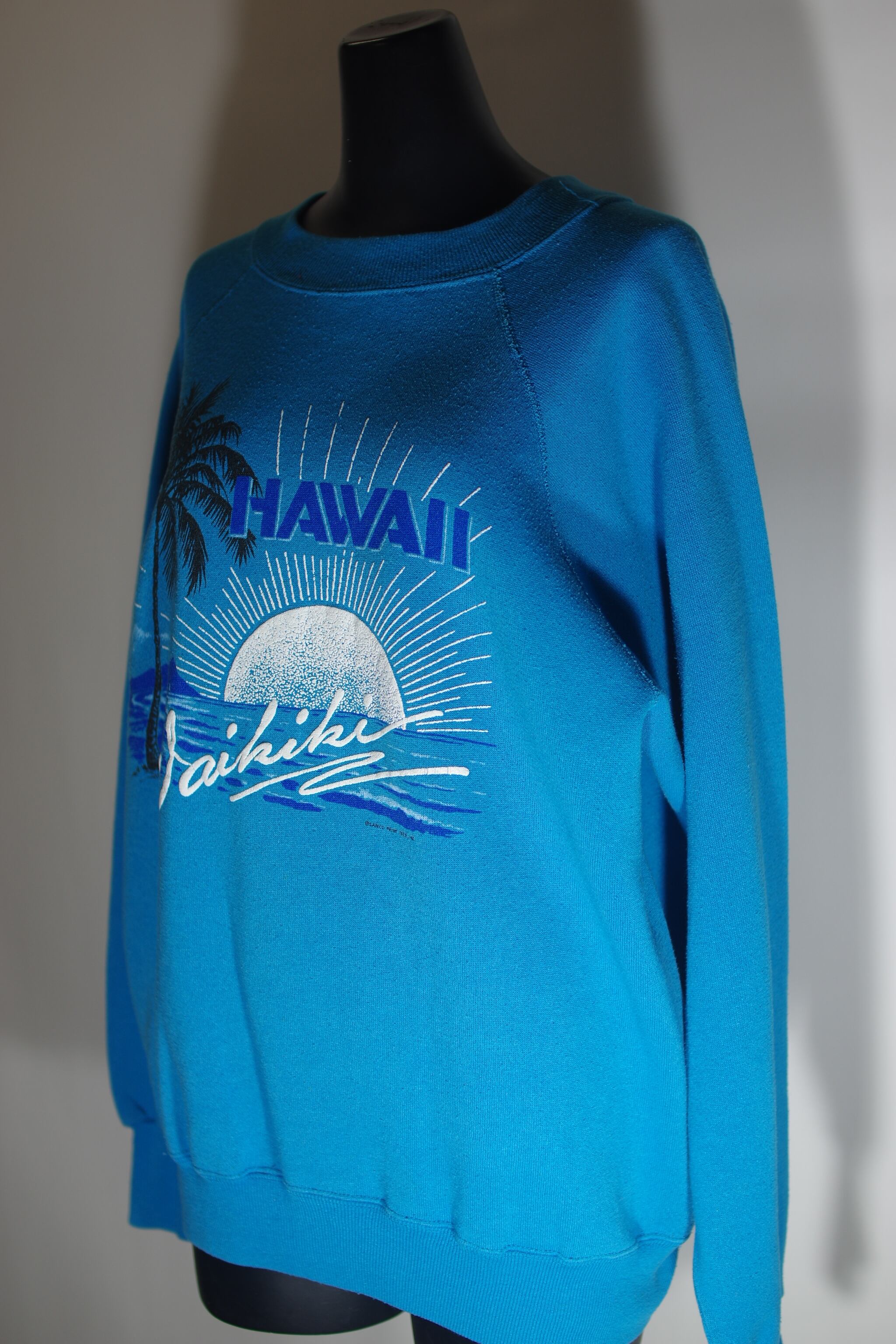 80年代のレトロなスウェットシャツをお探しの方におすすめです!カラフルなラグランスリーブとブルーのボディカラーが目を引く一枚です。短丈デザインで、トレンド感と遊び心を演出します。80年代のテイストがアクセントになり、個性的な着こなしを楽しむことができます。