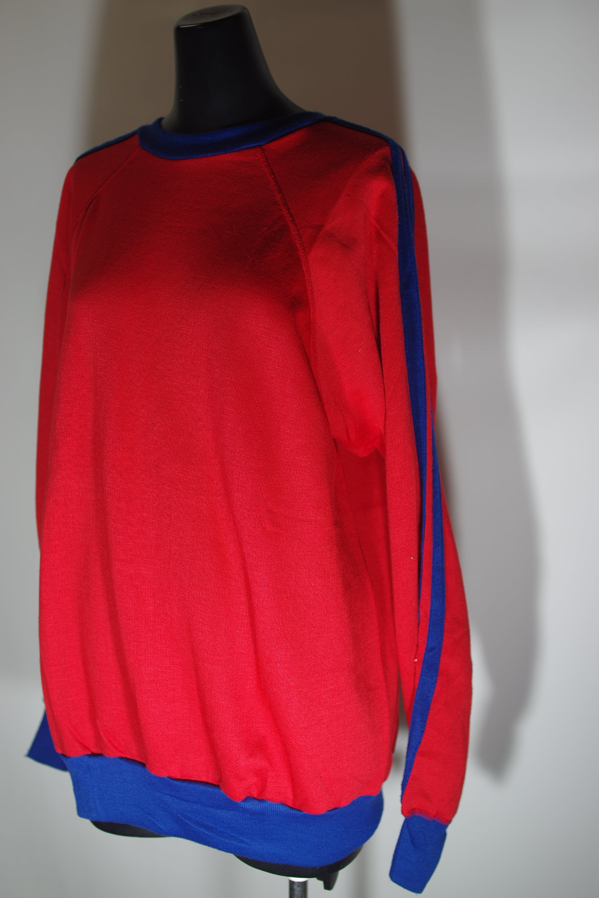 60~70年代のワシントンミルズカンパニーのビンテージスウェットシャツをご紹介します。この商品は、珍しいデッドストックのアイテムで、デザインも素敵です。特徴的なラグランスリーブと、赤と青の配色が絶妙なバランスで調和しています。